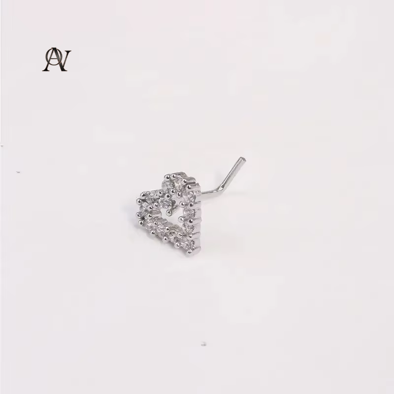 1Pc Simple Mini Love Heart L-Shaped Nose Stud Nail Ring for Women, Simple Stainless Steel Nose Piercing Jewelry Gift