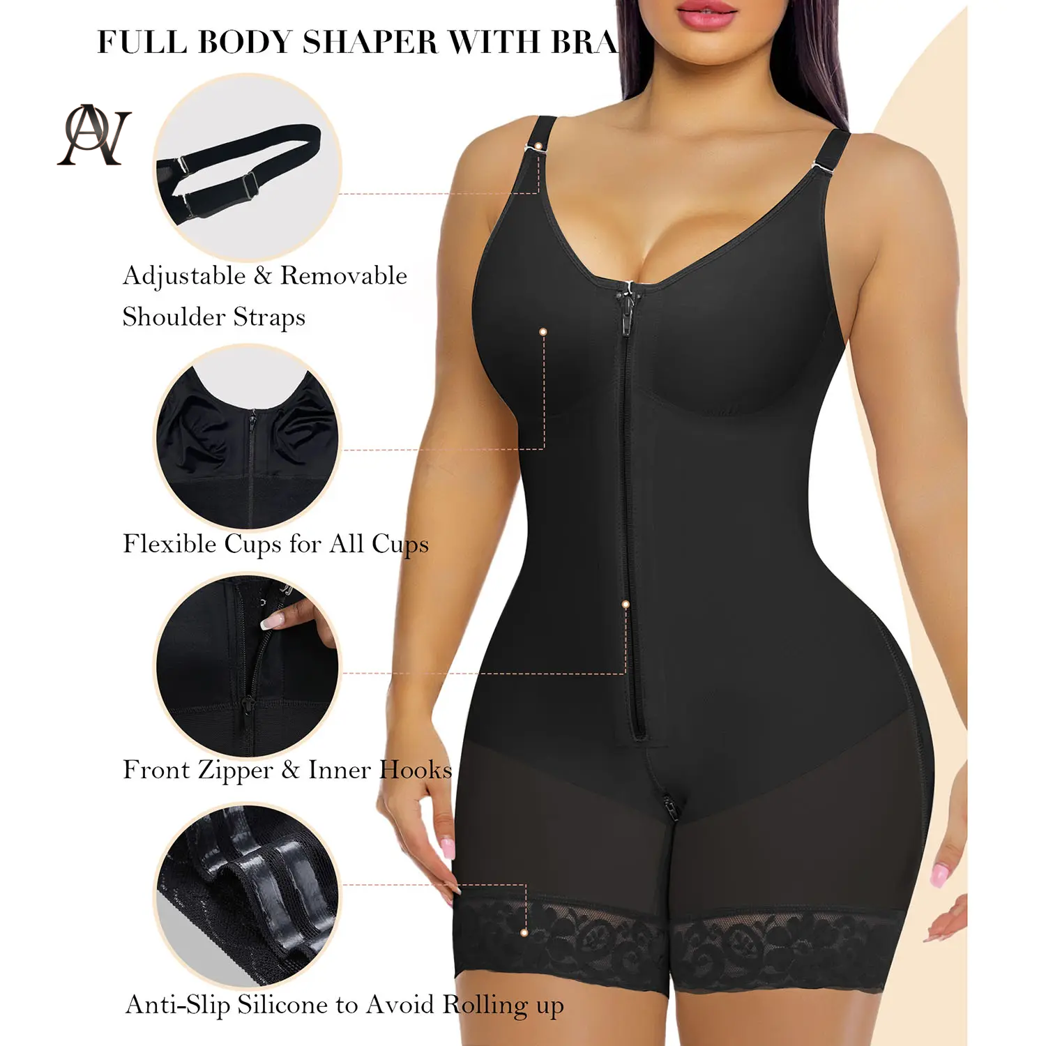 Women’S YIANNA Fajas Colombianas Shapewear Tummy Control Butt Lifter Shaper with Zipper Crotch Detachable Shoulder Strap Springstatements